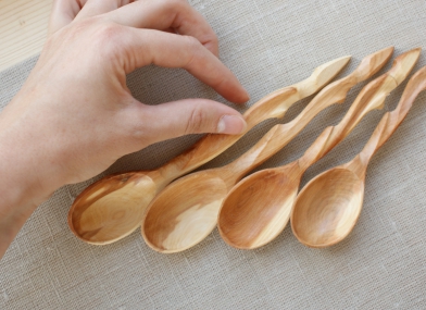 Ложка из дерева можжевельник овальной формы, ручка выгравирована и похожа на веточку. Оттенки от кремового до темно-бежевого. Посмотрите