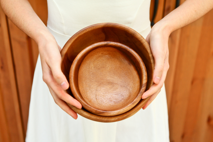 Деревянная салатница / тарелка / миска - из акации/гевеи для сервировки салата. Поверхность дерева покрывают пищевым лаком, салатница без труда моется, не впитывает влагу и запахи, но не подходит для горячих блюд. На данный момент эта тарелка представлена из дерева - гевея.