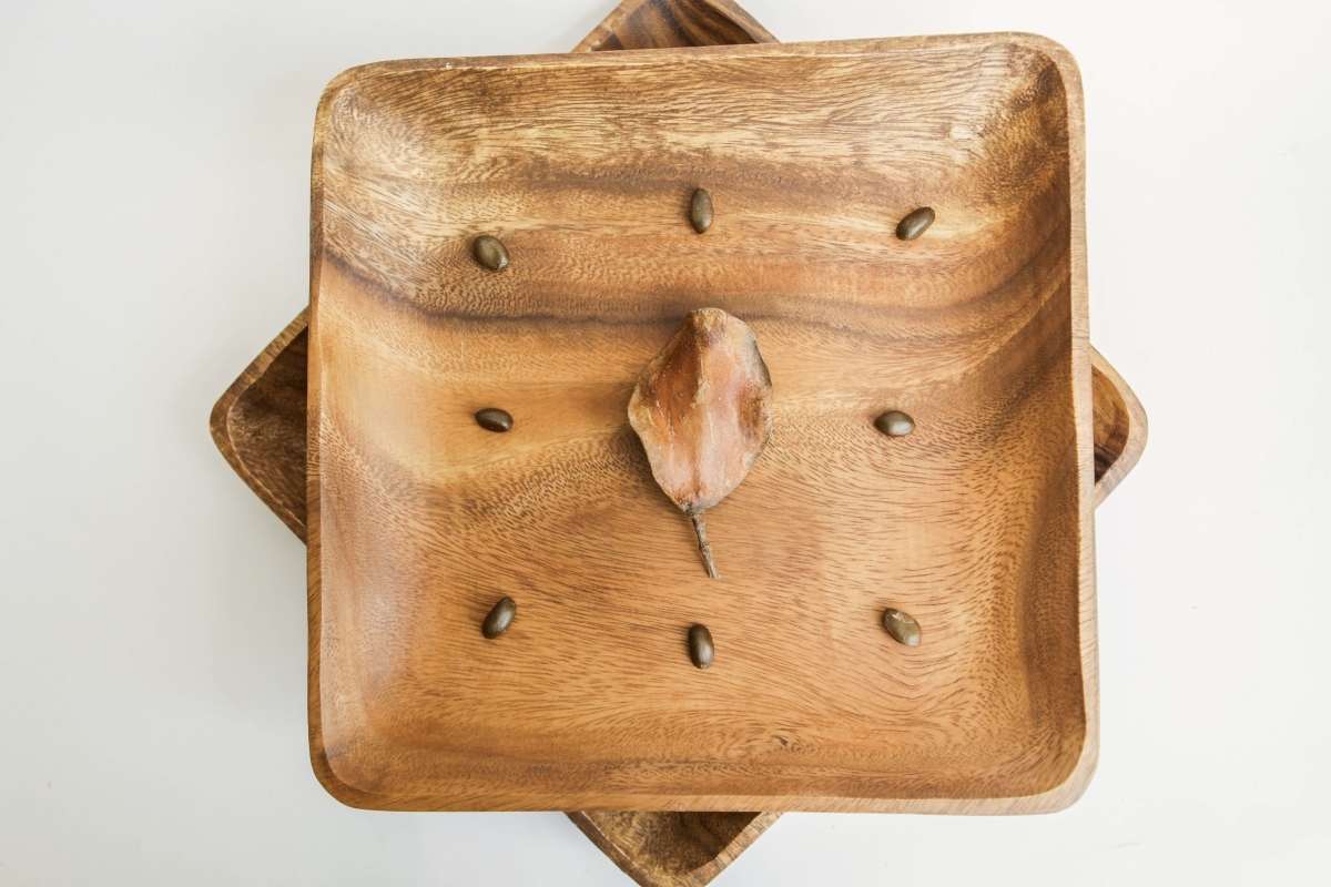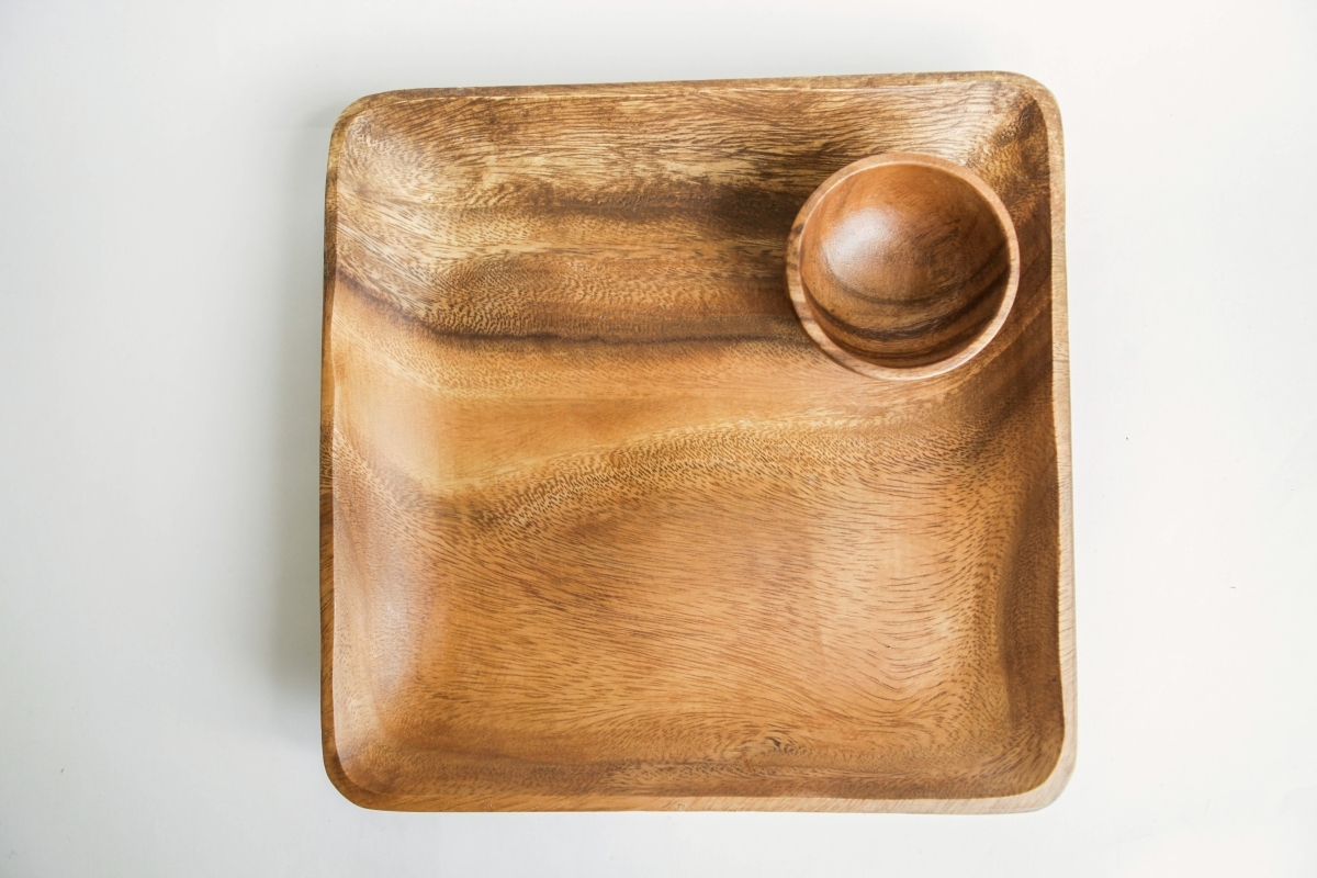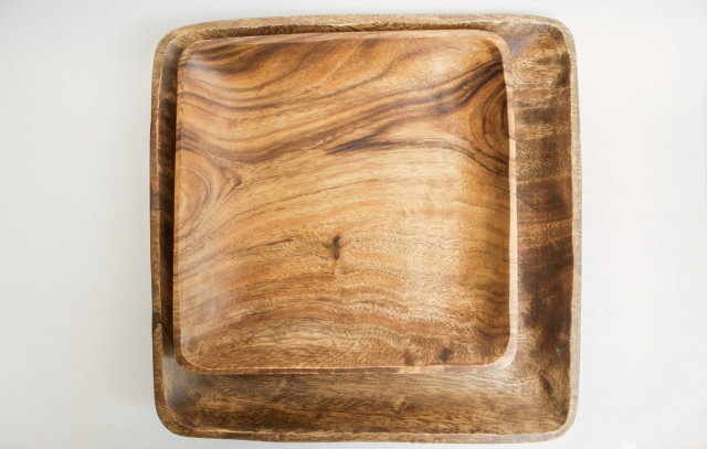 Квадратное деревянное блюдо из акации. Тонкое, очень легкое. Можно использовать как тарелку для сервировки закусок, порционных десертов, цукатов. Акация покрыта пищевым лаком, блюдо легко моется, но не подходит для очень горячего.
