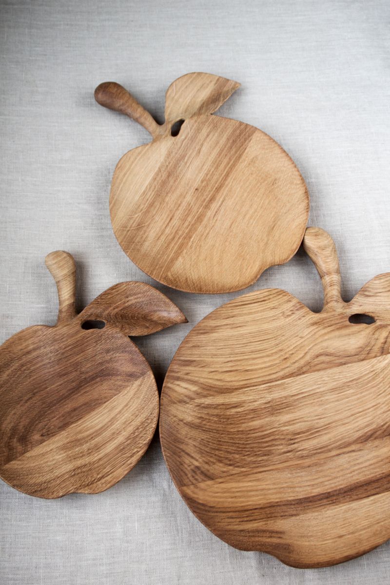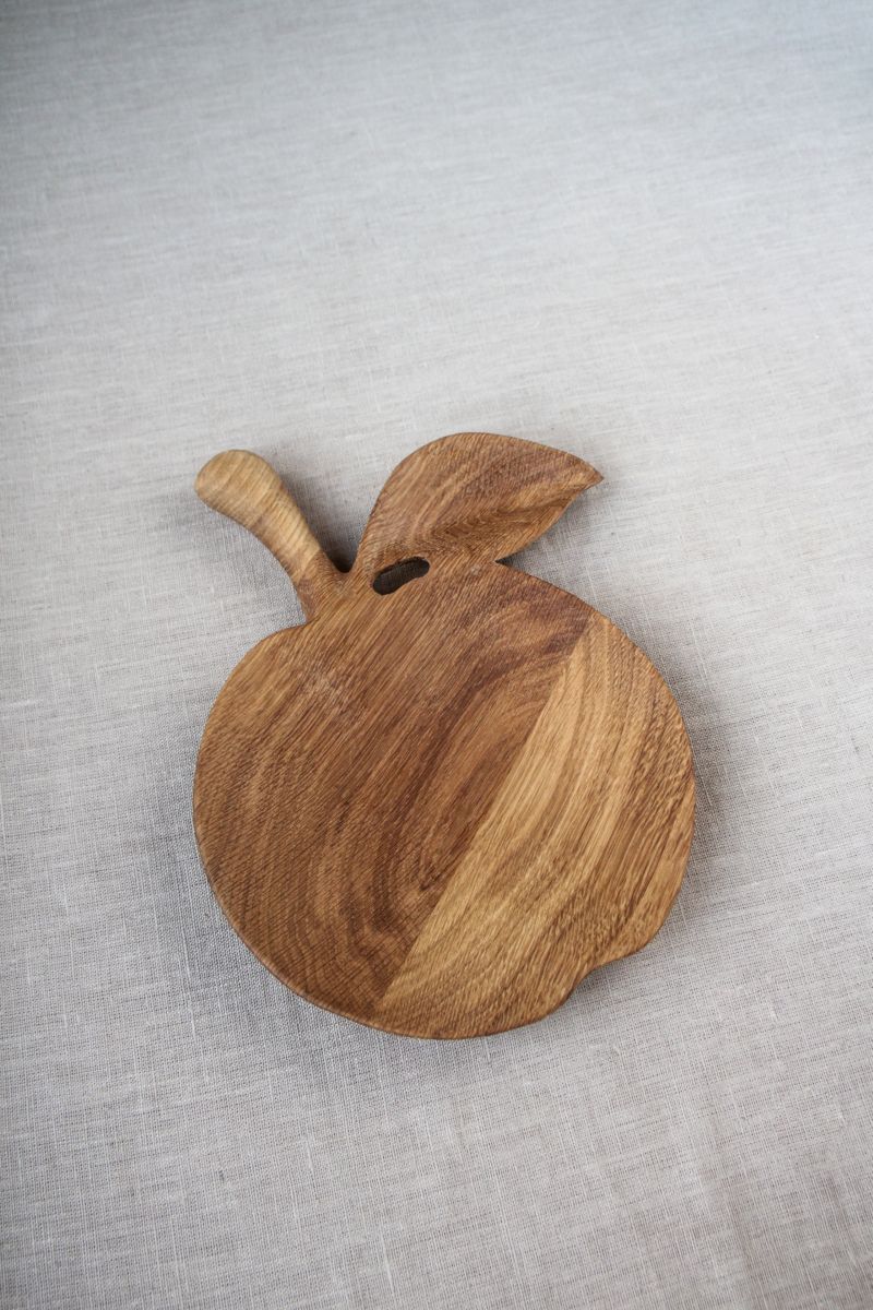 Небольшое деревянное блюдо Яблоко для сервировки, из дуба. Легкое и изящное, округлая удобная ручка. Покрытие масло и воск, подходит для горячего. Посмотрите побольше