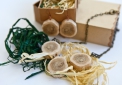 Бусы из спилов естественной формы, какой была ветка дерева акации. Несмотря на толщину спилов в 1 см, бусы легкие, на ощупь - теплые и гладкие. Фурнитура под бронзу. Бусы лучше не мочить. Традиционный уход для дерева - иногда натирайте шерстяной тканью.