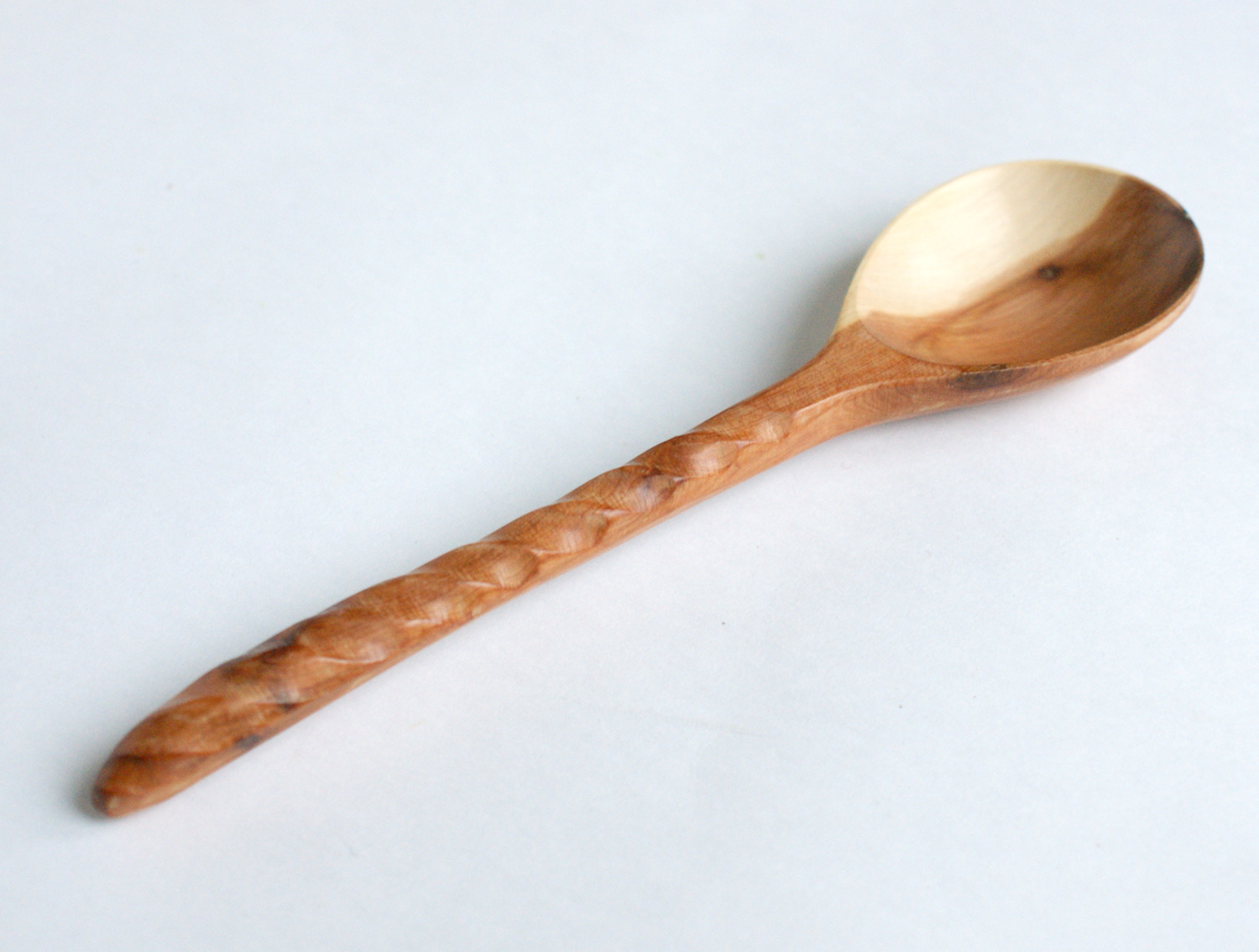 Деревянная ложка из можжевельника, среднего размера - для творожка, каши, супа, детям. Ручка с крученой гравировкой сверху, чуть загнута на конце. Оттенки от кремового до бежевого. Посмотрите такую же