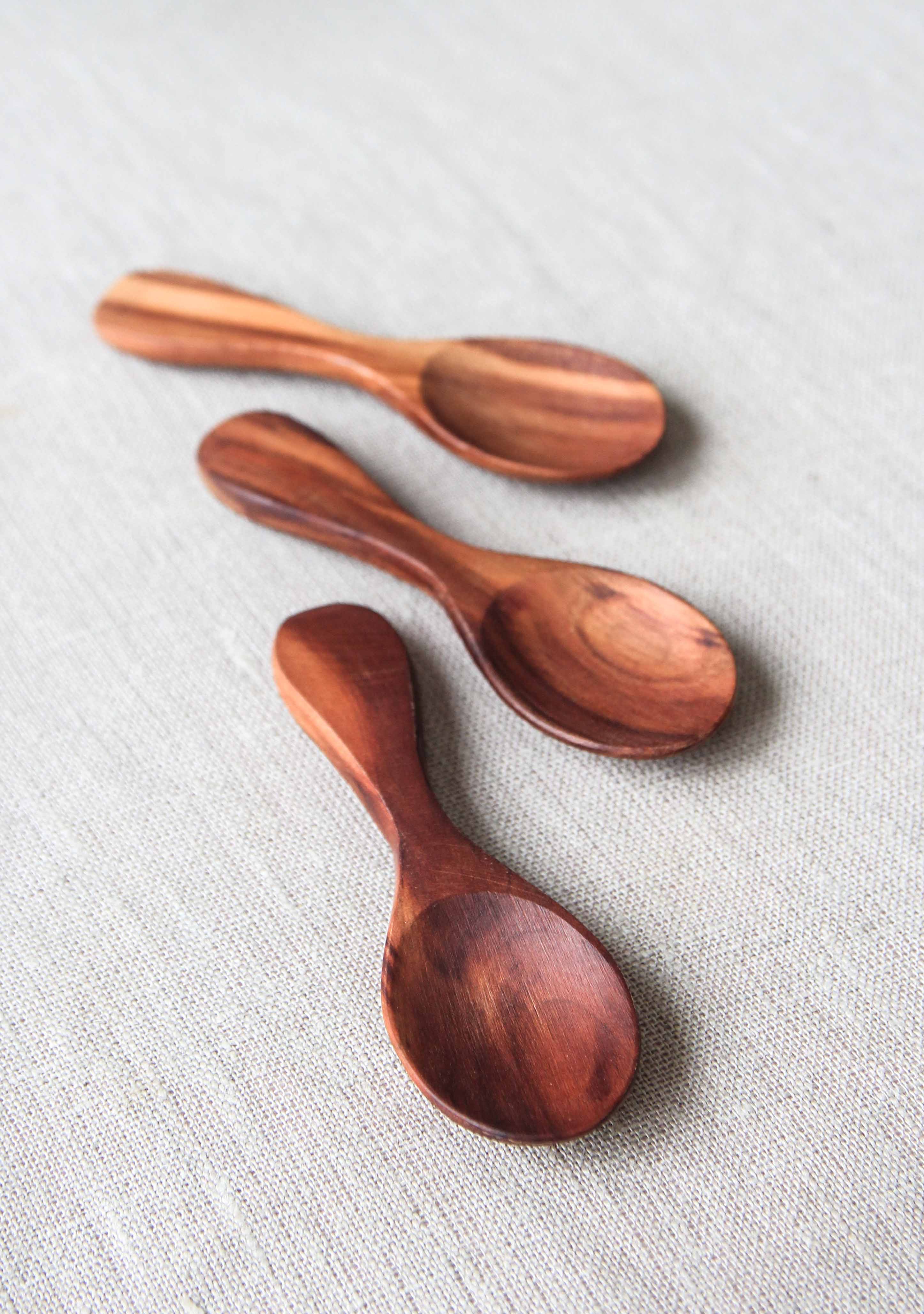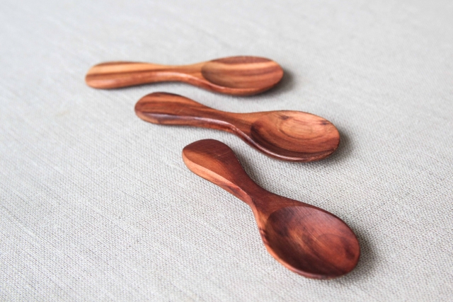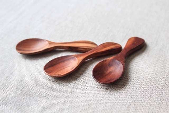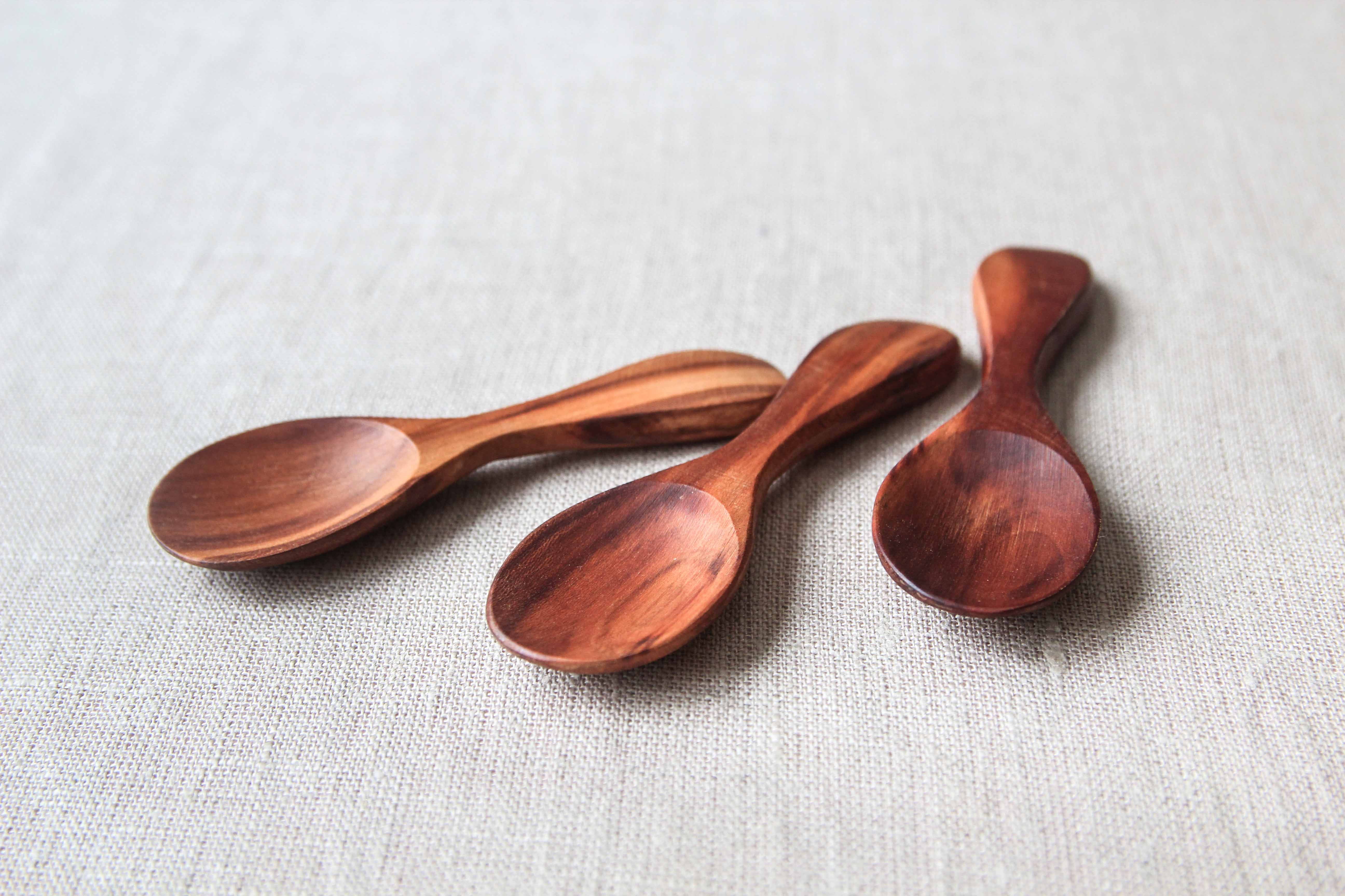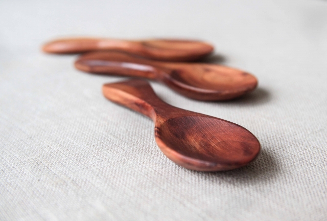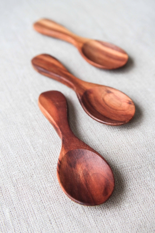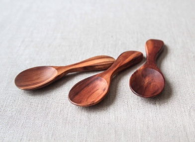 Идеально гладкая ложечка для специй из дерева сливы. Ручка плоская и широкая на конце, форма ложки похожа на песочные часы. Цвет от бордового до красноватого.