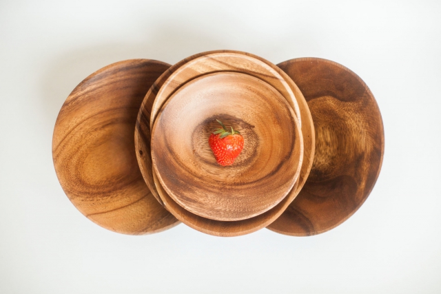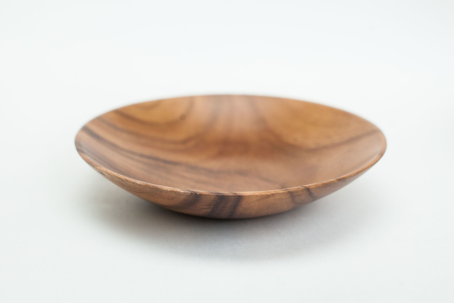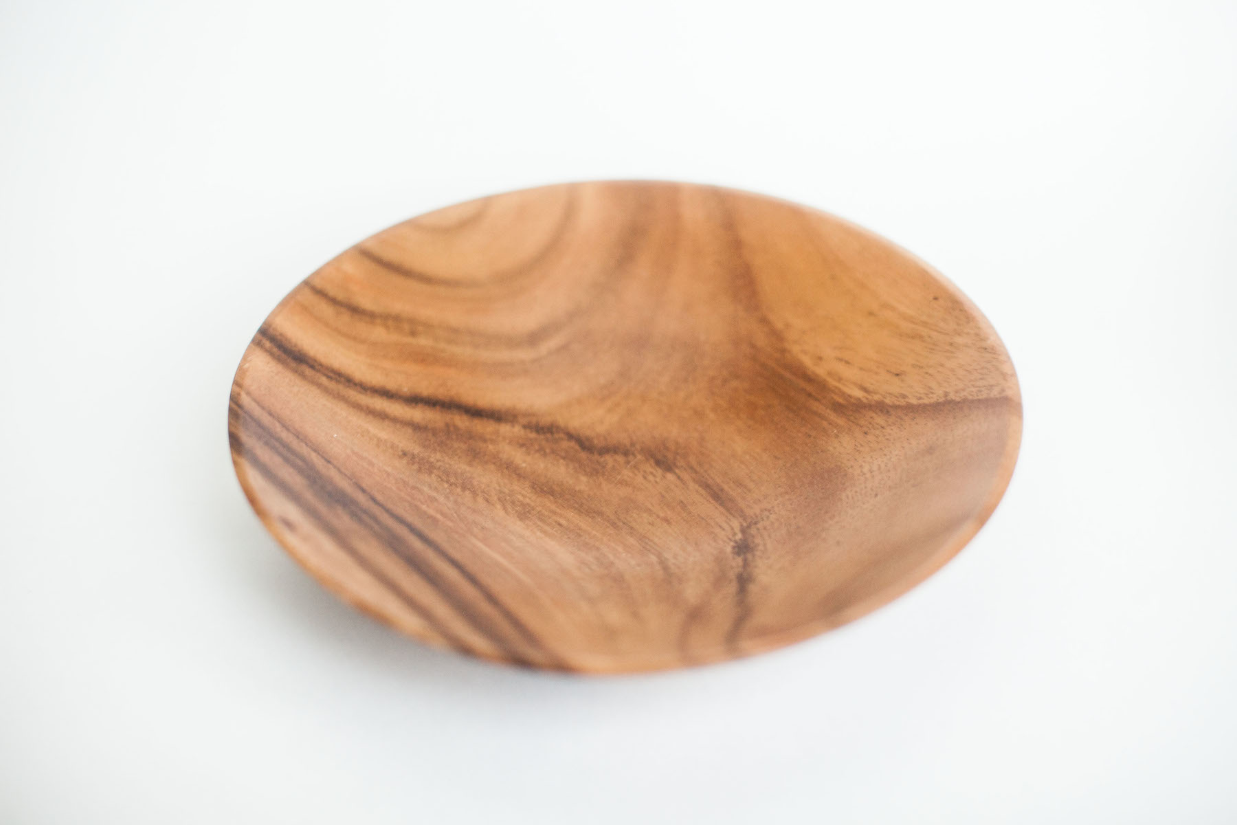 Деревянная миска из акации, невысокая, аккуратная и очень легкая. Дерево покрыто пищевым лаком, который не подходит для горячего.
