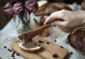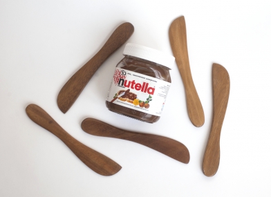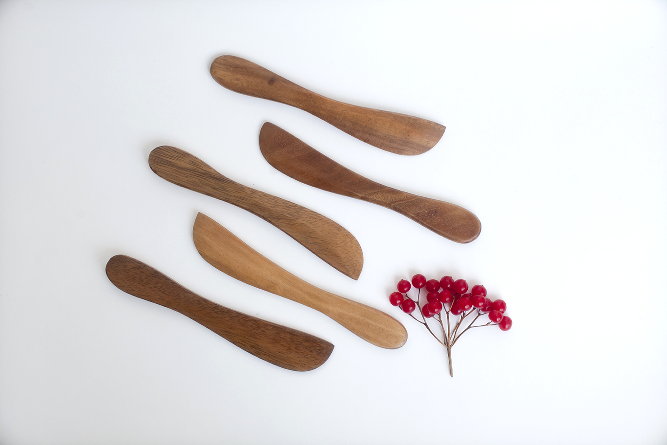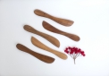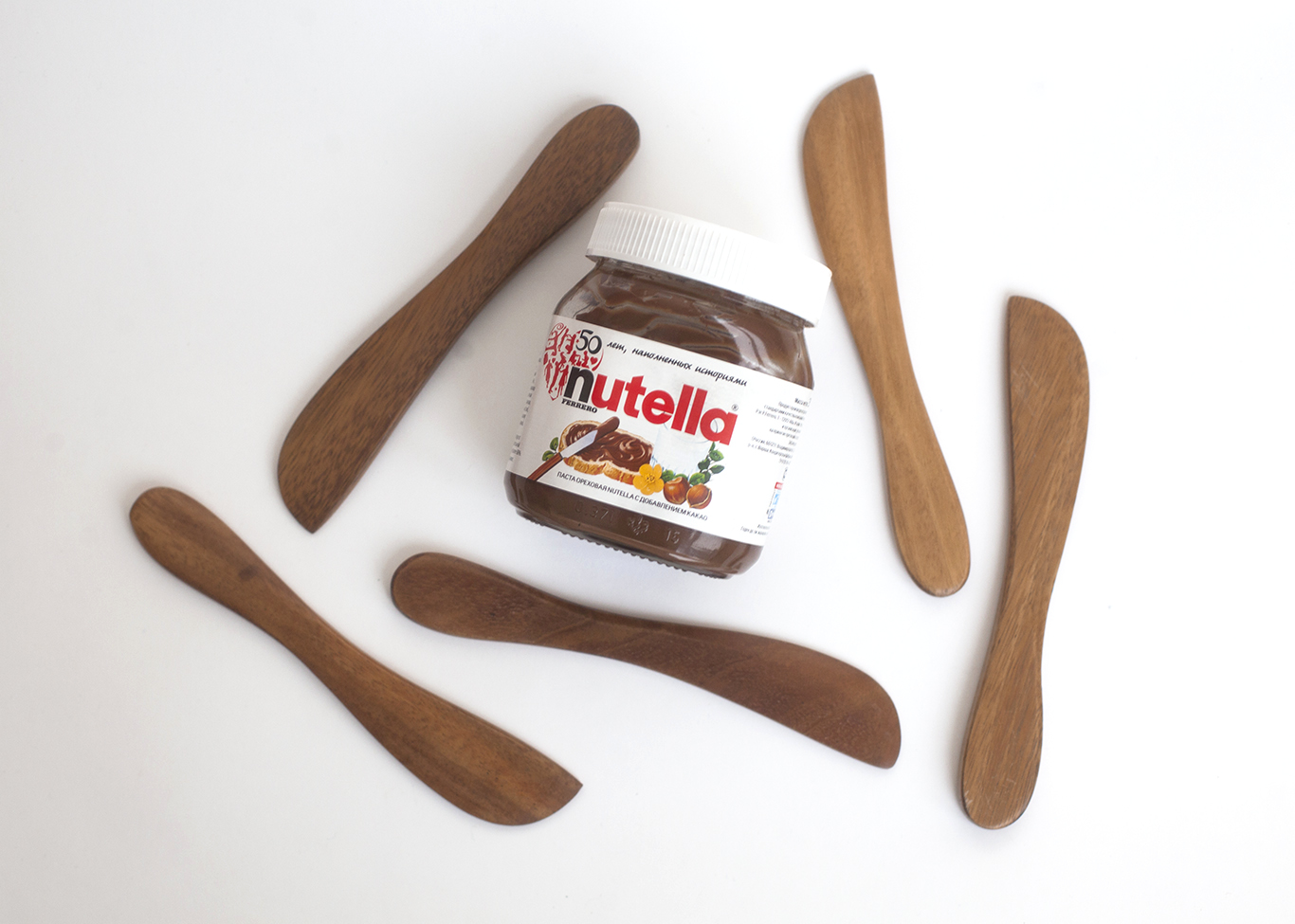 Деревянный нож с округлым и тупым концом. Удобно брать джем, масло, паштеты, мед, шоколадную и ореховую пасту и намазывать на хлеб или хлебцы. Дерево - акация. Очень легкий, приятно держать в руке.