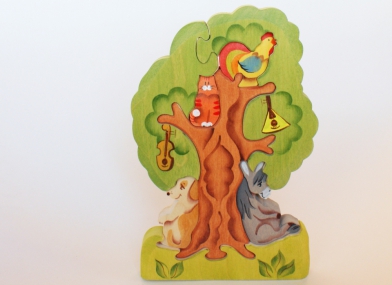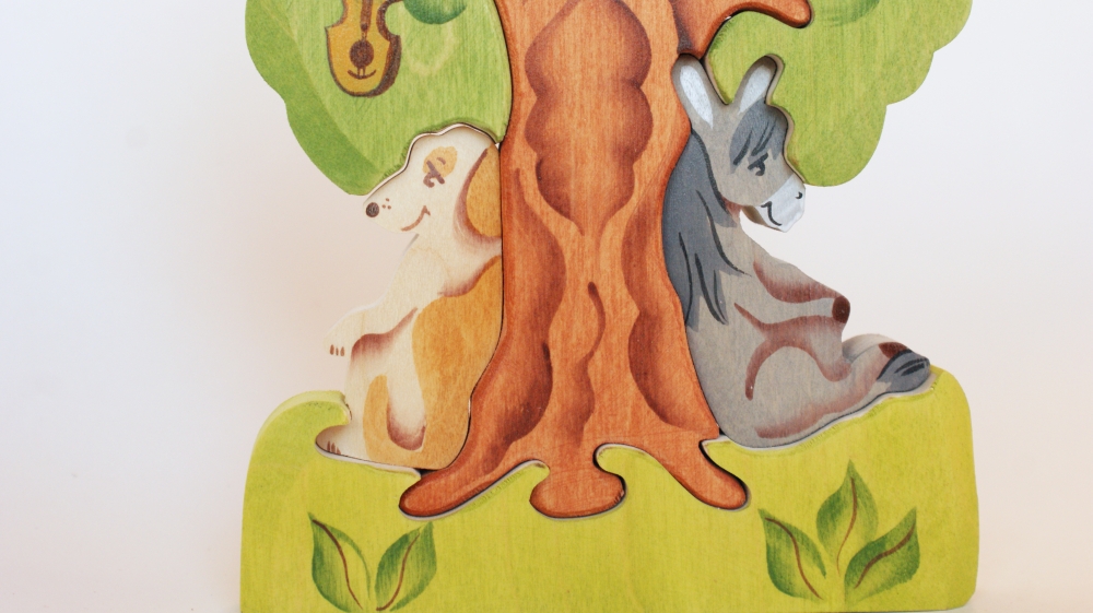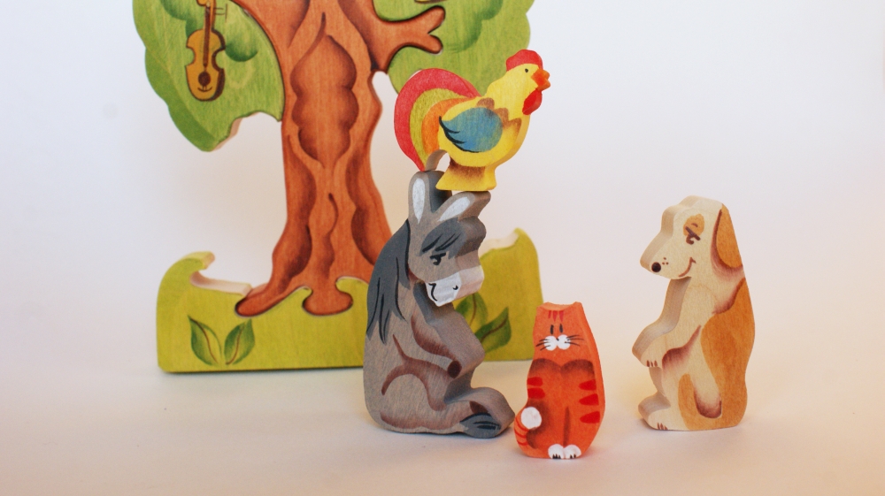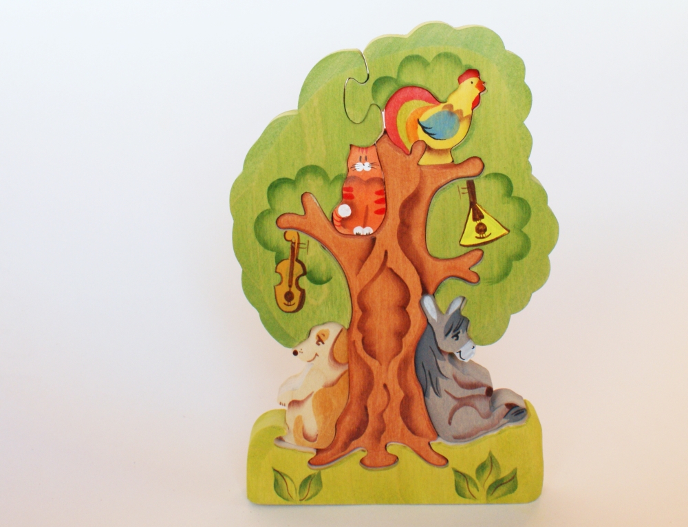 Деревянный пазл ручной работы по сказке Бременские музыканты из массива березы. Создан и раскрашен безопасными красками в чудесной ярославской мастерской Сказки Дерева. Фигурки устойчивы на ровной поверхности - отличный материал для ролевых игр как по сказке, так и просто про жизнь.