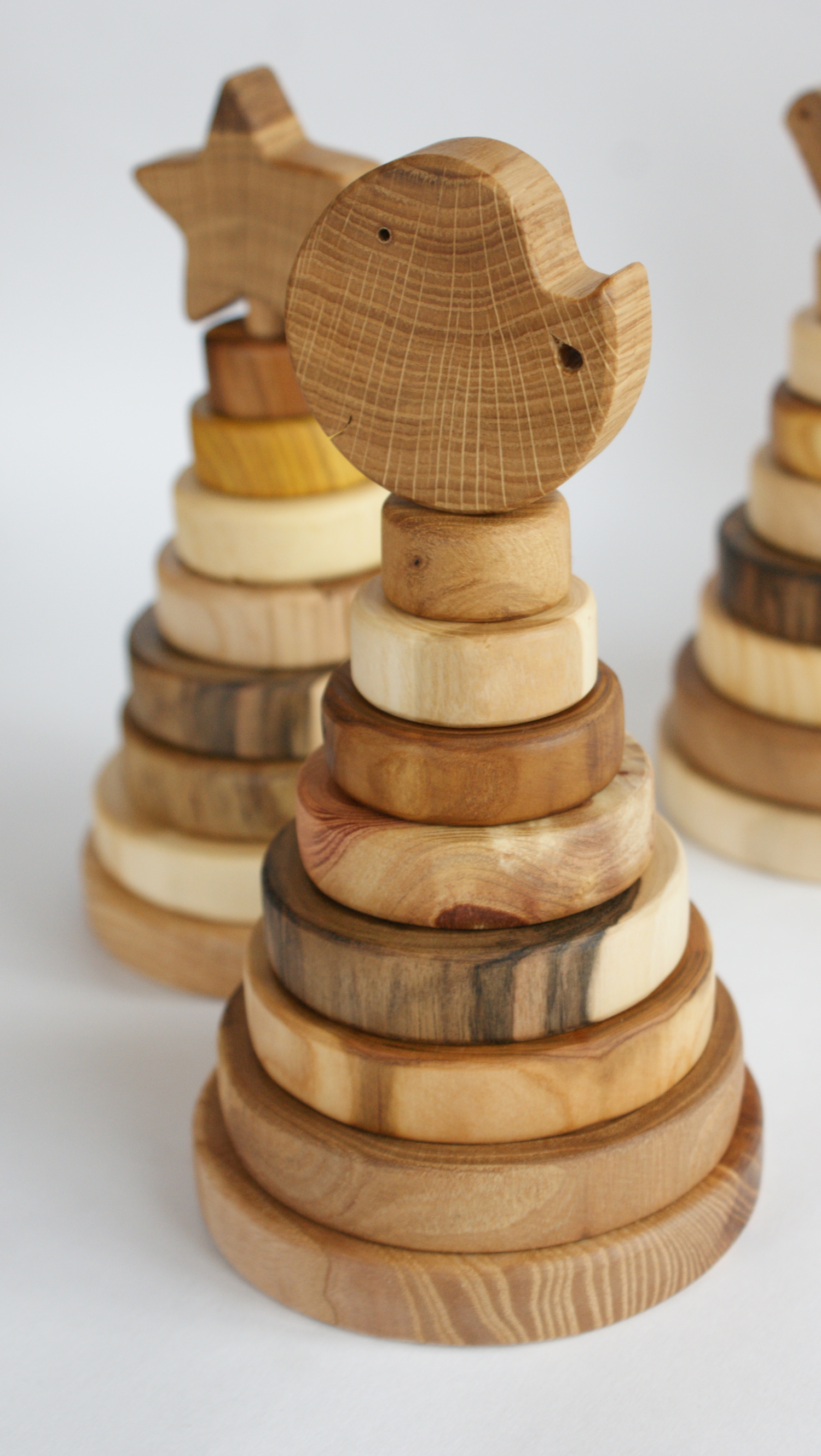 Пирамидка из дерева Звездочка, Кит и Голубка (на выбор при подтверждении заказа). По мере роста: учится хватать, пробовать на вкус, стучать, катать, нанизывать и сравнивать по размеру, в то время как мама получает удовольствие от эстетики и природной красоты. Игрушка идеально отшлифована, пропитана льняным маслом и пчелиным воском. Вкусная и приятная на ощупь.
