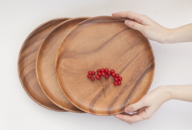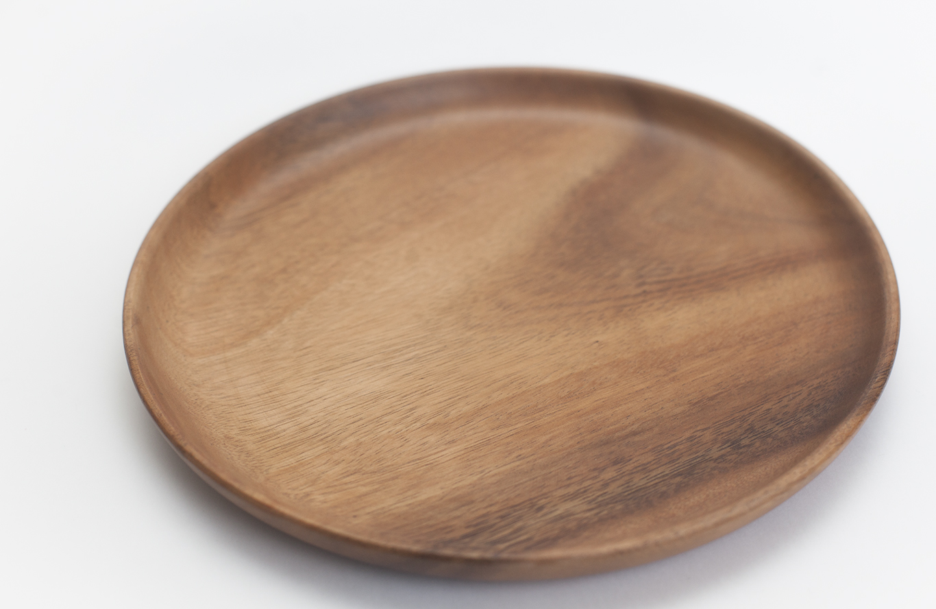 Деревянный поднос из акации. Круглая форма, высокие бортики, почти невесомый. Японское качество обработки дерева и лаконичный дизайн. Покрыт пищевым лаком, не подходит для горячего.